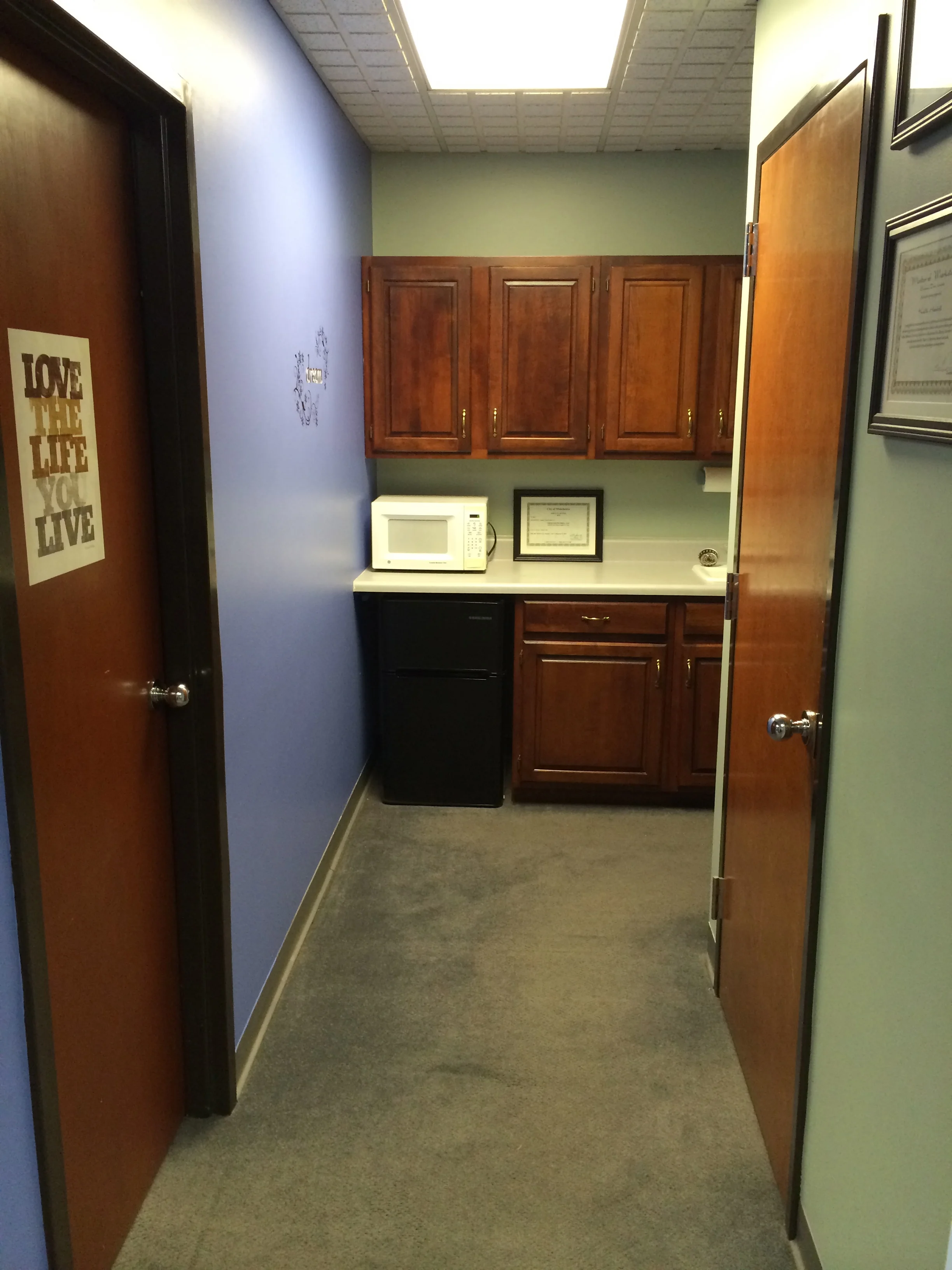 - We have a nice clean restroom in the office.